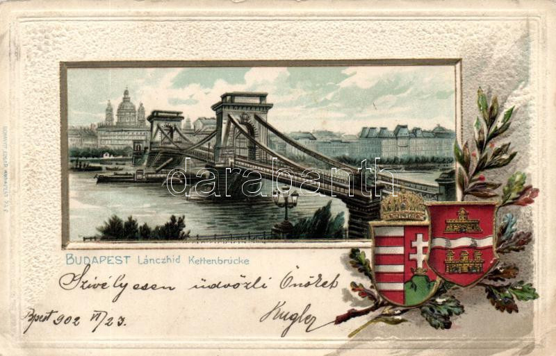 Beschreibung: Budapest, Lánchíd, címer / coat of arms, Emb. litho (EK)