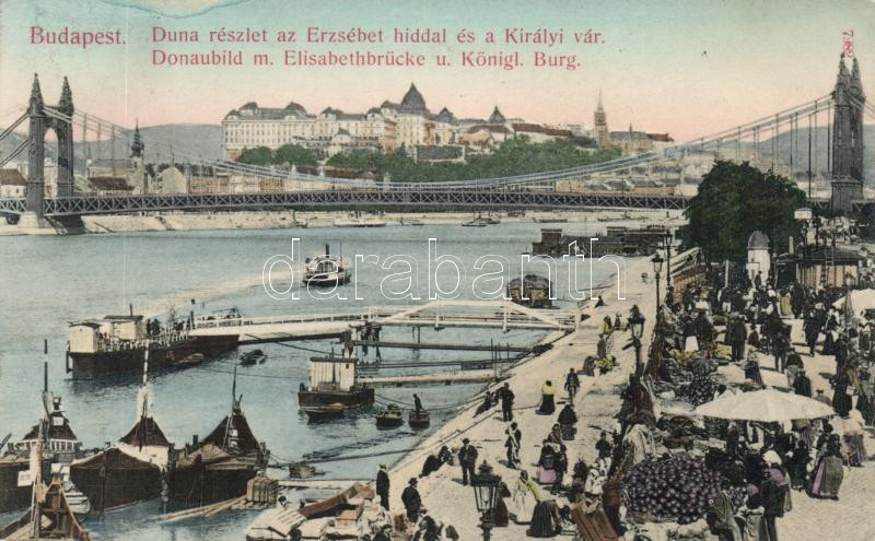 Beschreibung: Budapest V. Rakpart, piac, Erzsébet híd; Taussig A.