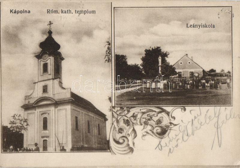 Kápolna, Katolikus templom, leányiskola, floral (EK) https://www.darabanth.com/de/207-Fernauktion/207.0/Ansichtskarten/Ungarn~5/Kapolna-Katolikus-templom-leanyiskola-floral-EK~II819952