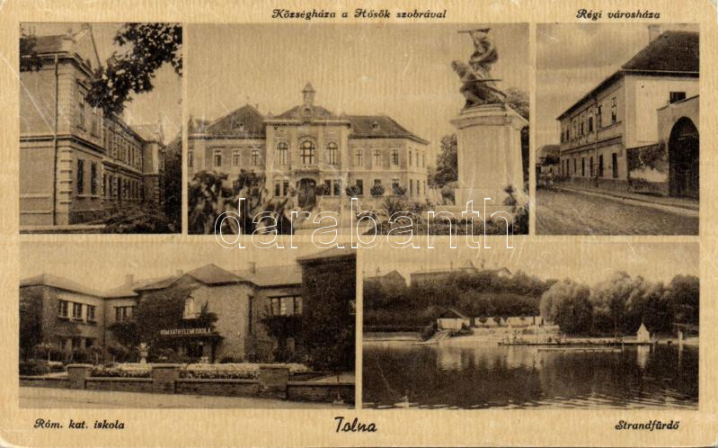 Tolna Római katolikus iskola, strandfürdő, városháza, községháza a Hős... https://www.darabanth.com/de/207-Fernauktion/207.0/Ansichtskarten/Ungarn~5/Tolna-Romai-katolikus-iskola-strandfurdo-varoshaza-kozseghaza-a-Hosok-szobraval-Rb~II795754
