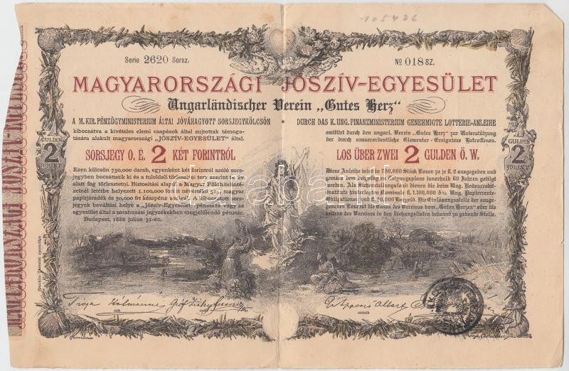 Budapest 1888. "Magyarországi Jószív Egyesület" sorsjegye, p... https://www.darabanth.com/de/207-Fernauktion/207.0/Numismatik/Aktien-und-Tickets~200007/Budapest-1888-Magyarorszagi-Josziv-Egyesulet-sorsjegye-pecsetelessel-2Ft-rol-magyar-es-n~II675398