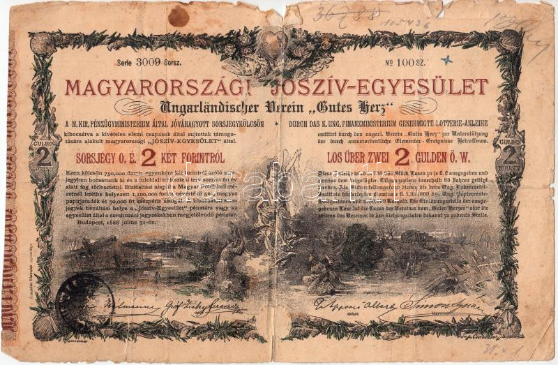 Budapest 1888. "Magyarországi Jószív Egyesület" sorsjegye, p... https://www.darabanth.com/de/207-Fernauktion/207.0/Numismatik/Aktien-und-Tickets~200007/Budapest-1888-Magyarorszagi-Josziv-Egyesulet-sorsjegye-pecsetelessel-2Ft-rol-magyar-es-n~II675714
