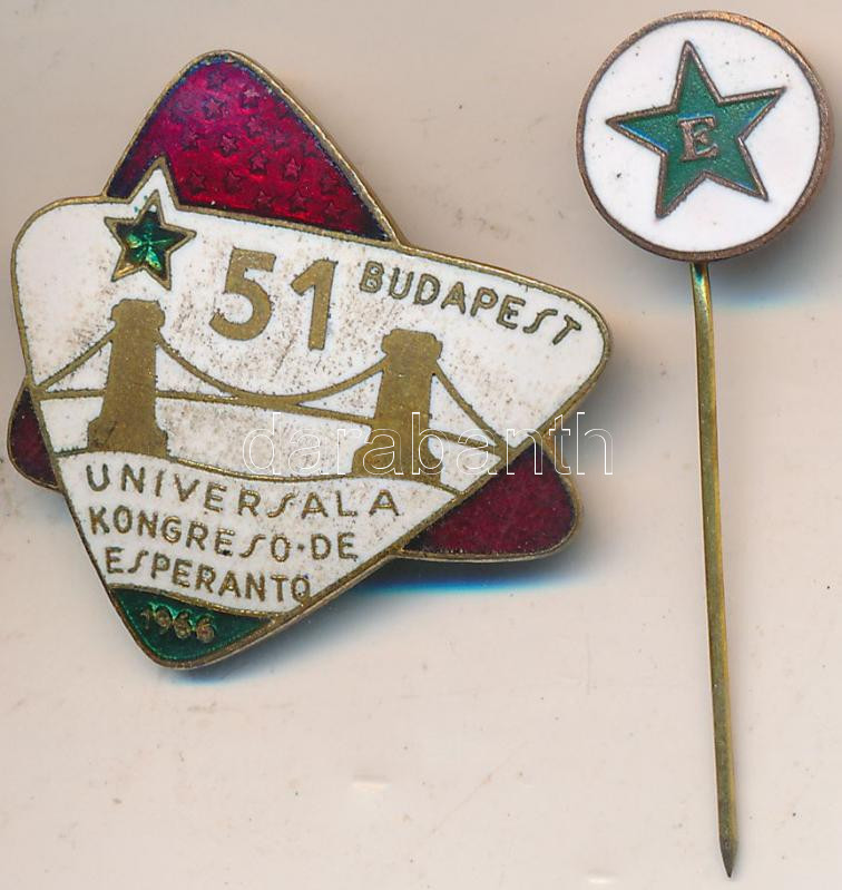 1966. "51. Eszperantó Világkongresszus Budapest (51 Universala Kongreso de Esperanto Budapest)" + "E" két db zománcozott eszperantó jelvény T:2