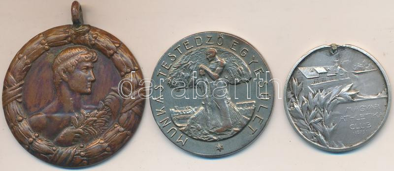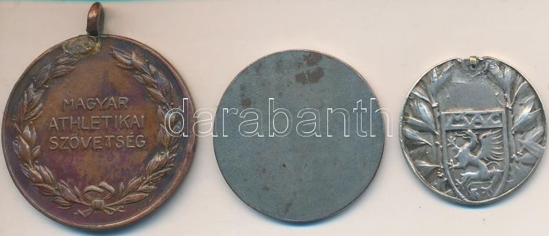 Beschreibung: Tarján Oszkár (1875-1933) DN "Magyar Athletikai Club 1875" Ag emlékérem fülnyommal (28,5mm/10,6g) + DN "Magyar Athletikai Szövetség" Br díjérem (38mm) + Ripszám Henrik (1889-1976) DN "Munkás Testedző Egyesület" ezüstözött fém emlékérem (33mm) T:2