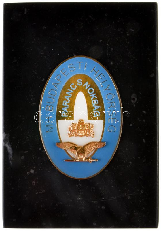 DN "MH BUDAPESTI HELYŐRSÉG PARANCSNOKSÁG" aranyozott Br plakett márván... https://www.darabanth.com/de/207-Fernauktion/207.0/Numismatik/Militaria~200017/DN-MH-BUDAPESTI-HELYORSEG-PARANCSNOKSAG-aranyozott-Br-plakett-marvany-lapon-103x150mm-T1~II839481