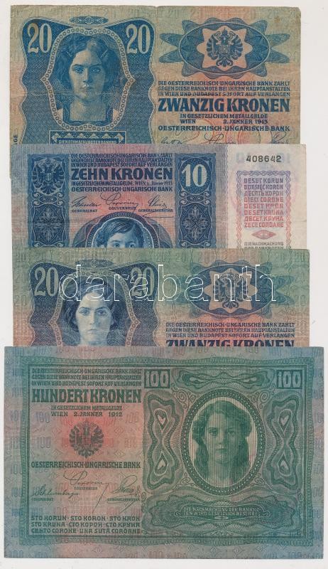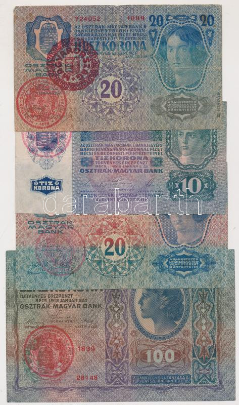 1912. 100K + 1913. 20K (2x) az egyik piros "Magyarország" kö... https://www.darabanth.com/de/207-Fernauktion/207.0/Numismatik/Ungarische-Banknoten~200009/1912-100K-plus-1913-20K-2x-az-egyik-piros-Magyarorszag-korbelyegzovel-plus-1915-10K-mindegyik-~II837611