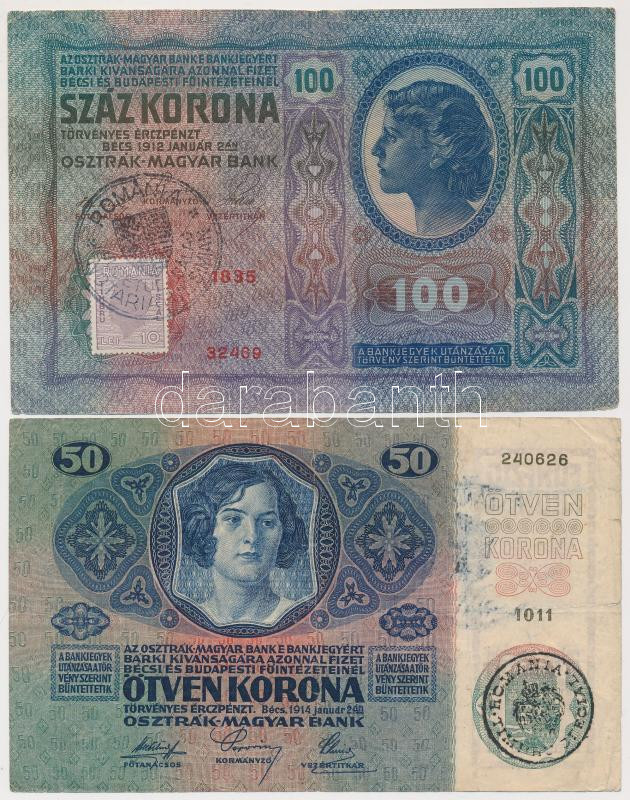 1912. 100K román bélyeggel és bélyegzéssel + 1914. 50K román felülbély... https://www.darabanth.com/de/207-Fernauktion/207.0/Numismatik/Ungarische-Banknoten~200009/1912-100K-roman-belyeggel-es-belyegzessel-plus-1914-50K-roman-felulbelyegzessel-TIII-III--3C~II837641