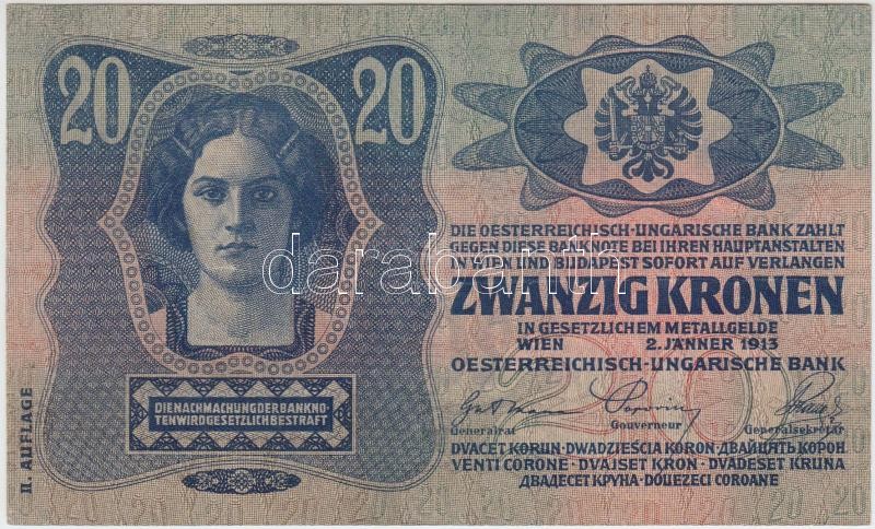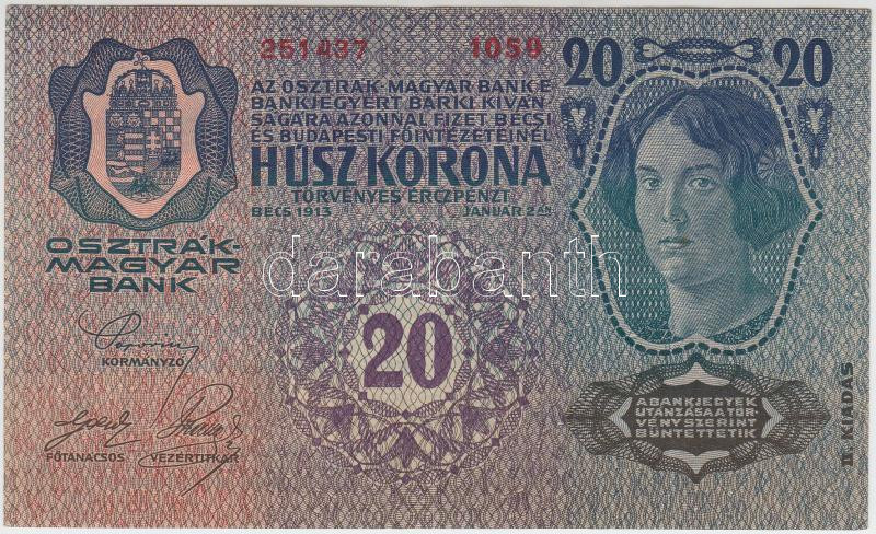 Beschreibung: 1913. 20K II. kiadás felülbélyegzés nélkül T:III