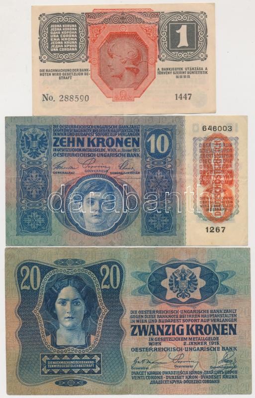 1913. 20K + 1915. 10K "Deutschösterreich" felülbélyegzéssel ... https://www.darabanth.com/de/207-Fernauktion/207.0/Numismatik/Ungarische-Banknoten~200009/1913-20K-plus-1915-10K-Deutschosterreich-felulbelyegzessel-plus-1916-1K-mindharom-11020-Para-K~II837675