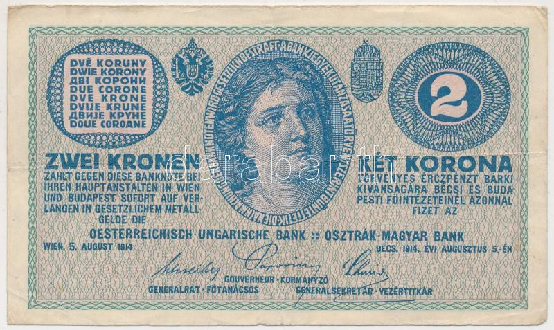 1914. 2K "C" sorszámjel T:III https://www.darabanth.com/de/207-Fernauktion/207.0/Numismatik/Ungarische-Banknoten~200009/1914-2K-C-sorszamjel-TIII~II838706
