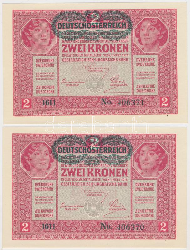 1917. 2K "Deutschösterreich" felülbélyegzéssel (2x) egymás u... https://www.darabanth.com/de/207-Fernauktion/207.0/Numismatik/Ungarische-Banknoten~200009/1917-2K-Deutschosterreich-felulbelyegzessel-2x-egymas-utani-sorszammal-TI~II823772