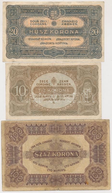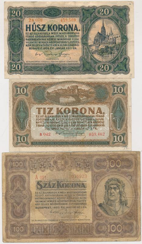 1920. 10K + 20K + 100K T:III,III- https://www.darabanth.com/de/207-Fernauktion/207.0/Numismatik/Ungarische-Banknoten~200009/1920-10K-plus-20K-plus-100K-TIII-III-~II838722