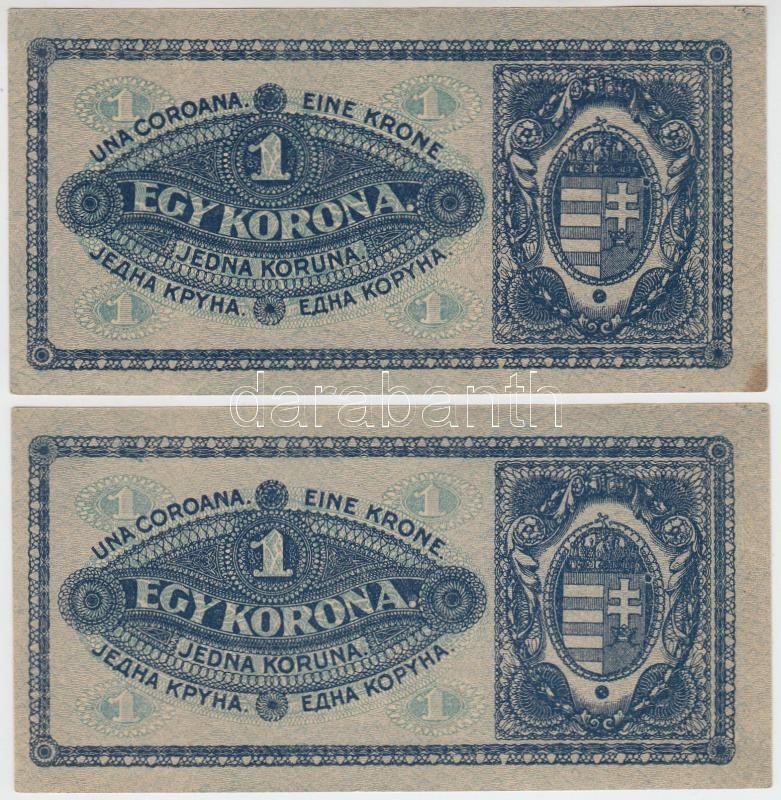 1920. 1K (3x) sorszámkövető T:I-,II (hajtatlanok) https://www.darabanth.com/de/207-Fernauktion/207.0/Numismatik/Ungarische-Banknoten~200009/1920-1K-3x-sorszamkoveto-TI-II-hajtatlanok~II844055