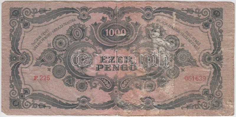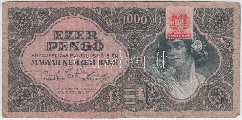 Beschreibung: 1945. 1000P "MNB" bélyeggel, fordított hátlapi alapnyomattal T:IV