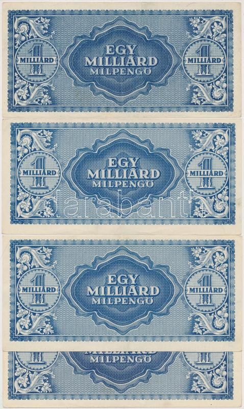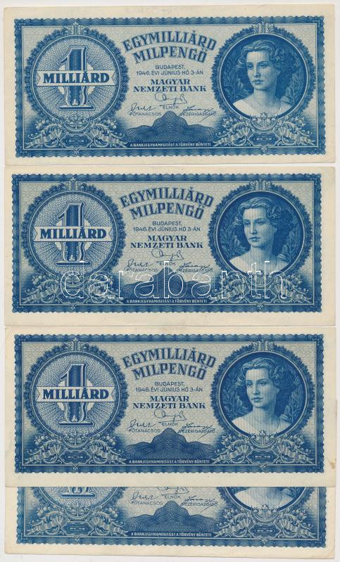 Beschreibung: 1946. 1.000.000.000MP (4x) T:I-,II (hajtatlanok)