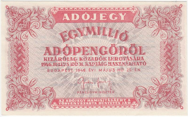 Beschreibung: 1946. 1.000.000AP fehér papír T:I