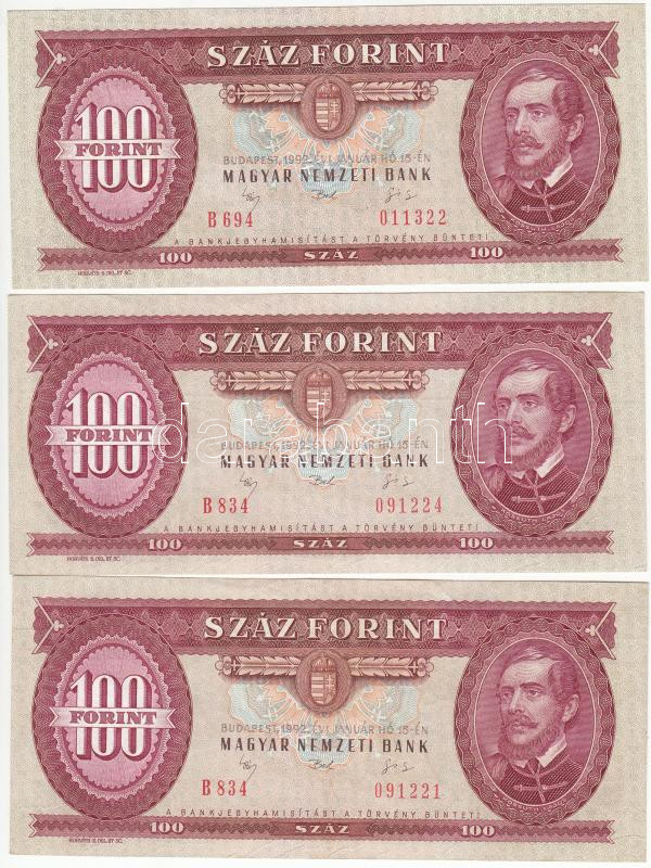 Beschreibung: 1992. 100Ft (3x) egymáshoz közeli sorszámok is T:I,I-