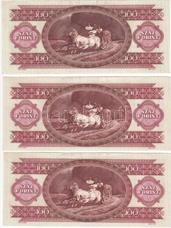 1992. 100Ft (3x) egymáshoz közeli sorszámok is T:I,I- https://www.darabanth.com/de/207-Fernauktion/207.0/Numismatik/Ungarische-Banknoten~200009/1992-100Ft-3x-egymashoz-kozeli-sorszamok-is-TI-I-~II820743