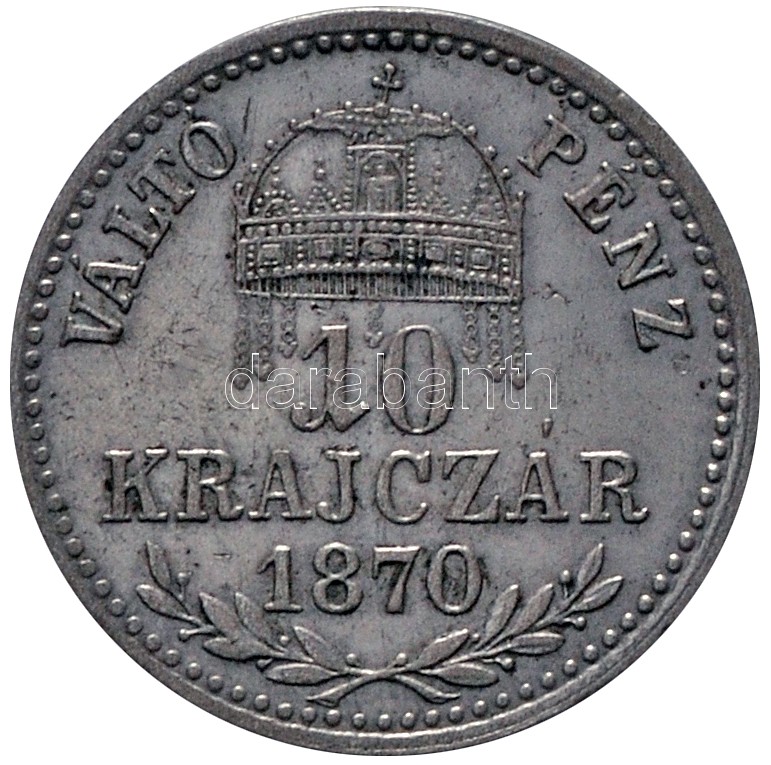 1870KB 10kr Ag "Váltó Pénz" T:2 https://www.darabanth.com/de/207-Fernauktion/207.0/Numismatik/Ungarische-Munzen~200010/1870KB-10kr-Ag-Valto-Penz-T2~II817715