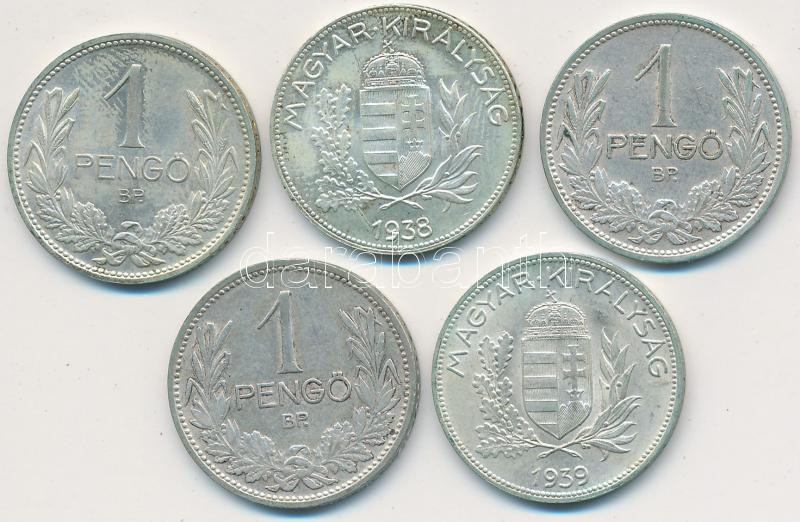 Beschreibung: 1926-1939. 1P Ag (5xklf) teljes sorozat T:vegyes