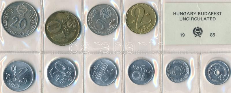 1985. 2f-20Ft 10db klf érmés forgalmi sor fóliatokban T:1 https://www.darabanth.com/de/207-Fernauktion/207.0/Numismatik/Ungarische-Munzen~200010/1985-2f-20Ft-10db-klf-ermes-forgalmi-sor-foliatokban-T1~II844752