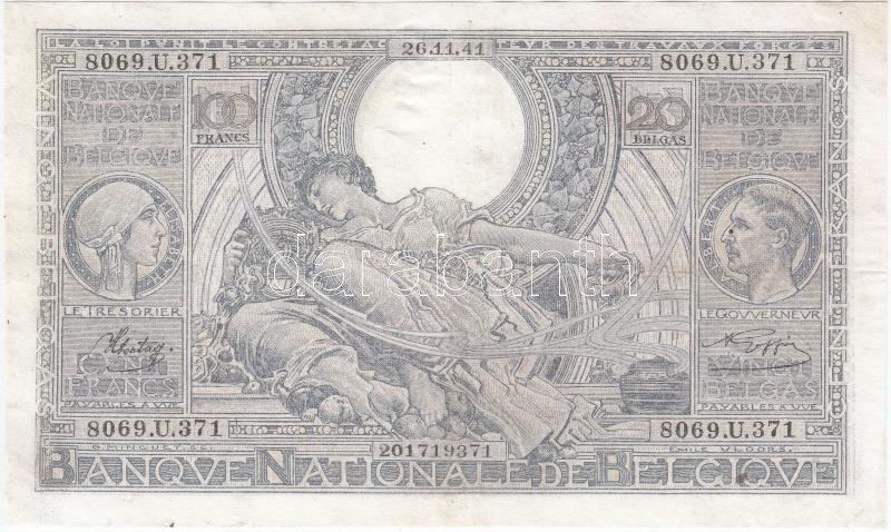 Belgium 1941. 100 Francs C:VF https://www.darabanth.com/de/207-Fernauktion/207.0/Numismatik/Weltweit-Banknoten~200013/Belgium-1941-100Fr-TII--3Cbr3EBelgium-1941-100-Francs-CVF~II839766