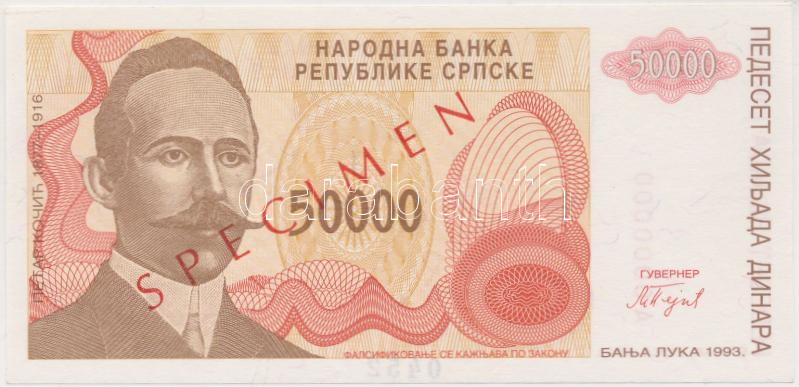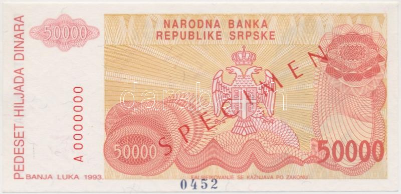 Bosznia-Hercegovina / Szerb Köztársaság 1993. 50.000D "SPECIMEN" T:I