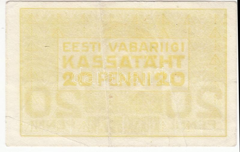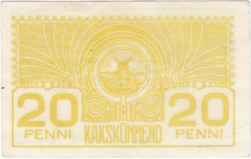 Estonia 1919. 20 Penni C:F https://www.darabanth.com/de/207-Fernauktion/207.0/Numismatik/Weltweit-Banknoten~200013/Esztorszag-1919-20p-TIII-3Cbr3EEstonia-1919-20-Penni-CF~II841031