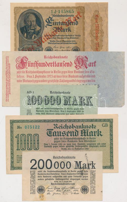 Beschreibung: Német Birodalom / Weimari Köztársaság 1922-1923. 1000M (2xklf) + 100.000M + 200.000M + 500.000M T:vegyes