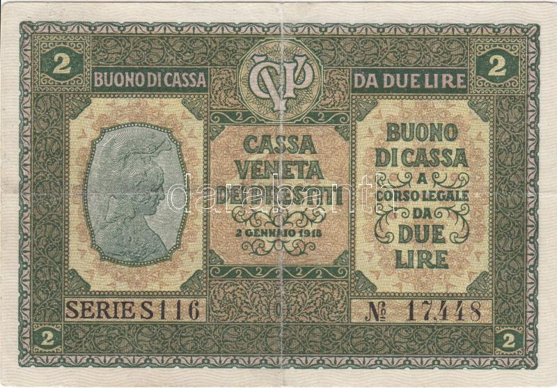 Italy/V... https://www.darabanth.com/de/207-Fernauktion/207.0/Numismatik/Weltweit-Banknoten~200013/OlaszorszagVelenceosztrak-magyar-megszallas-1918-2L-TIII-3Cbr3EItalyVeniceAustrian-Hungar~II841221