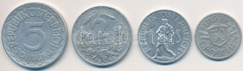 Austria 1946-1952. 50 Grosch... https://www.darabanth.com/de/207-Fernauktion/207.0/Numismatik/Weltweit-Munzen~200014/Ausztria-1946-1952-50Gr-5Sch-4xklf-T2-3Cbr3EAustria-1946-1952-50-Grosche--5-Schilling-4xdiff-~II839115