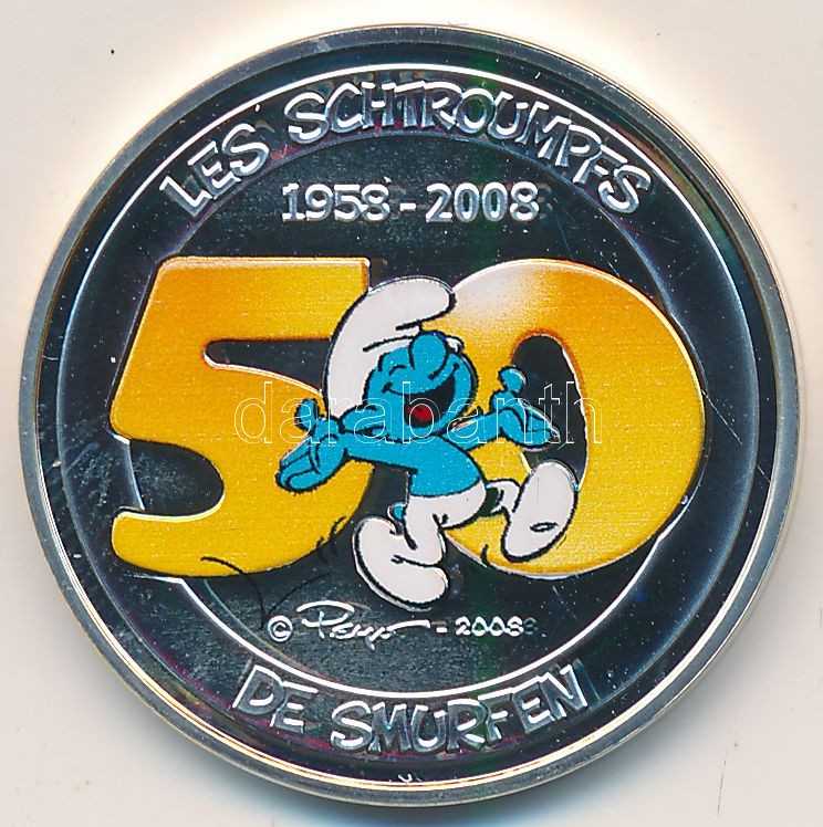 Belgium 2008. 5€ Ag "50 éves a Hupikék törpikék" T:PP