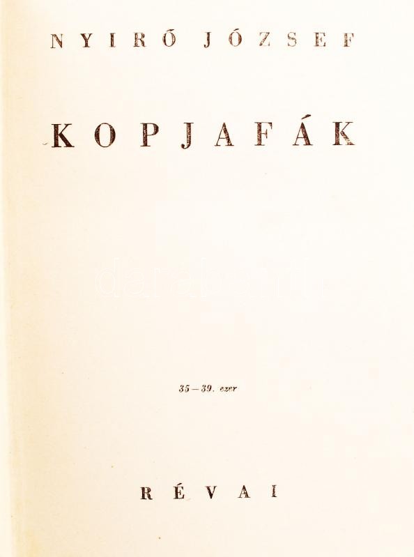 Nyírő József: Kopjafák. Bp., (1936), Révai. Kiadói halina kötés, jó á... https://www.darabanth.com/de/208-Fernauktion/208.0/Andere-Sammelgebiete/Bucher-Sonstige-Raritaten~30040/Nyiro-Jozsef-Kopjafak-Bp-1936-Revai-Kiadoi-halina-kotes-jo-allapotban~II824702