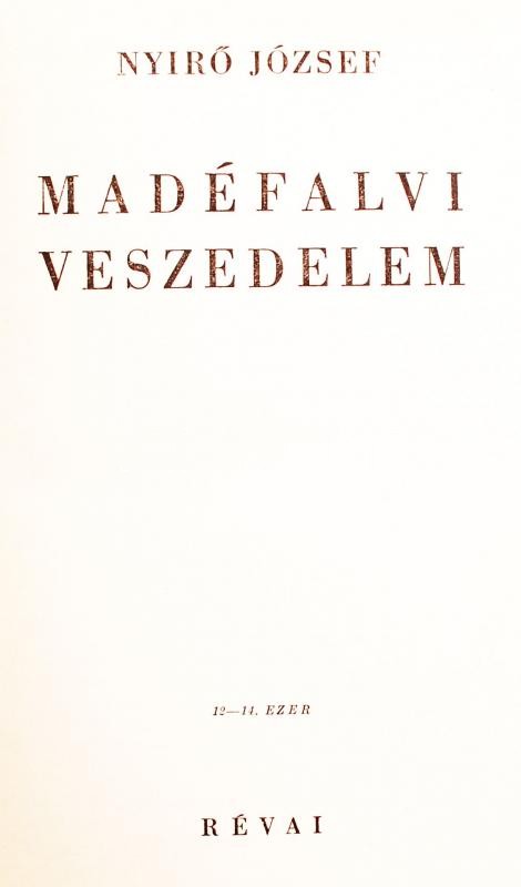 Nyírő József: Madéfalvi veszedelem. Bp., 1939, Révai. A kötéstábla raj... https://www.darabanth.com/de/208-Fernauktion/208.0/Andere-Sammelgebiete/Bucher-Sonstige-Raritaten~30040/Nyiro-Jozsef-Madefalvi-veszedelem-Bp-1939-Revai-A-kotestabla-rajzat-Toncz-Tibor-kesz~II824632