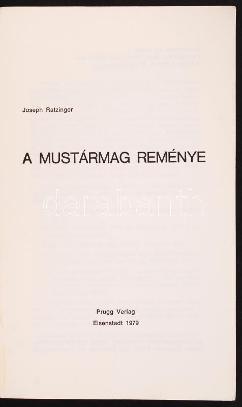 Ratzinger, Joseph: A mustármag reménye. Eisenstadt, 1979, Prugg Verlag... https://www.darabanth.com/de/208-Fernauktion/208.0/Andere-Sammelgebiete/Bucher-Sonstige-Raritaten~30040/Ratzinger-Joseph-A-mustarmag-remenye-Eisenstadt-1979-Prugg-Verlag-Kiadoi-papirkotes-kis~II846649