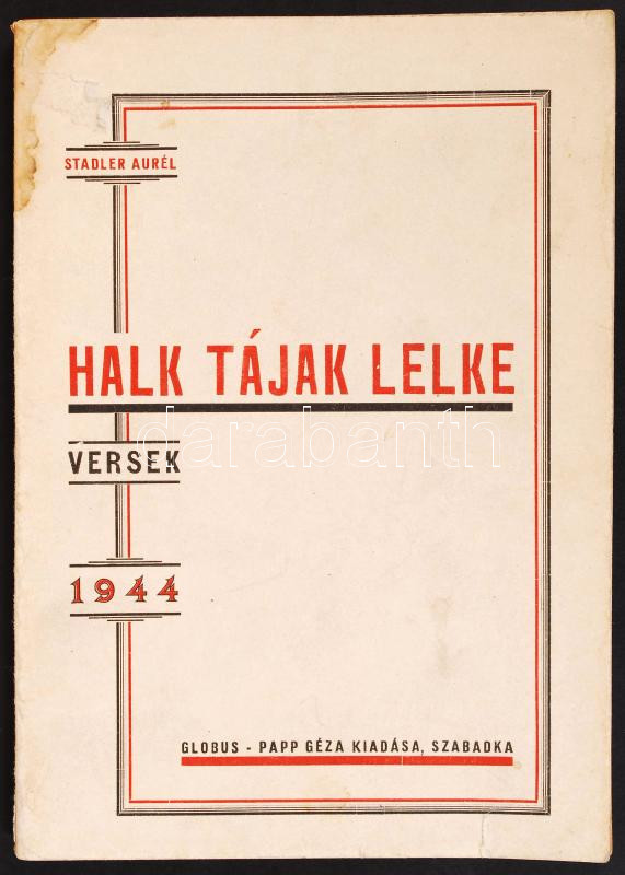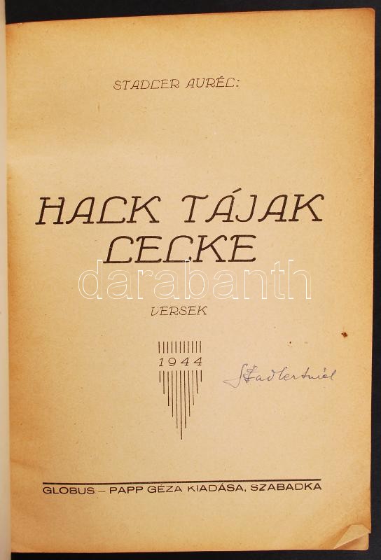 Stadler Aurél: Halk tájak lelke, versek. Szabadka, 1944, Papp Géza. De... https://www.darabanth.com/de/208-Fernauktion/208.0/Andere-Sammelgebiete/Bucher-Sonstige-Raritaten~30040/Stadler-Aurel-Halk-tajak-lelke-versek-Szabadka-1944-Papp-Geza-Dedikalt-Kiadoi-papirkot~II846687