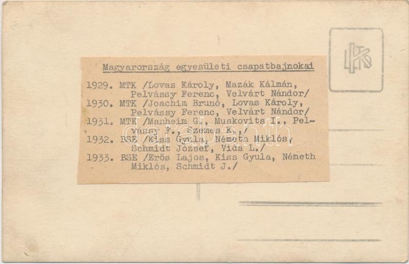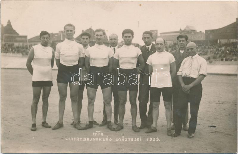 1929 Az MTK kerékpáros bajnok csapata, a sportolók nevei a hátoldalon ... https://www.darabanth.com/de/208-Fernauktion/208.0/Andere-Sammelgebiete/Foto~30032/1929-Az-MTK-kerekparos-bajnok-csapata-a-sportolok-nevei-a-hatoldalon-felsorolva-9x14-cm~II845311