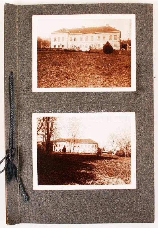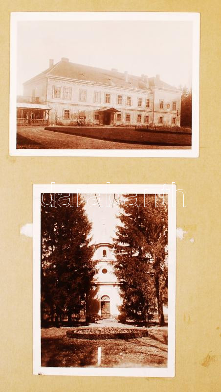 cca 1900-1910 Azonosítandó kastély külső, belső fotói és a tulajdonosok családi képei, négy kép vadászatról szól, összesen 33 fotó, házilag készített albumban, 5x8 cm és 9x12 cm közötti méretben