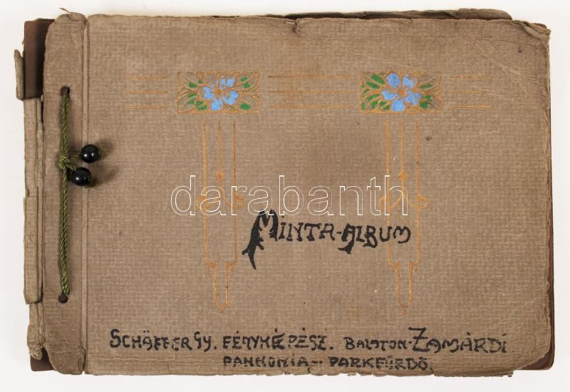 cca 1920-1940 Schäffer Gyula fényképész Minta albuma Balaton-Zamárdiból (vitorlások, fürdőzők, szép nyaraló épületek, 22 db kép, a borító használtas, de a képek kifogástalanok, 9x13 cm