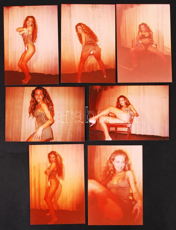 Beschreibung: cca 1980-1985 Erotikus fényképek egy bevállalós modellről, 7 db műfényben, napfényfilmre készített színes kép, 9x13 cm /
