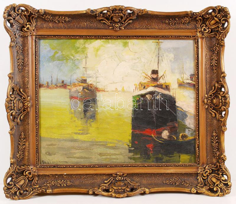 Olvashatatlan jelzéssel: Hajók. Olaj, vászon, antik keretben, 40×50 cm https://www.darabanth.com/de/208-Fernauktion/208.0/Andere-Sammelgebiete/Gemalde-und-Grafiken~30001/Olvashatatlan-jelzessel-Hajok-Olaj-vaszon-antik-keretben-40C39750-cm~II845760