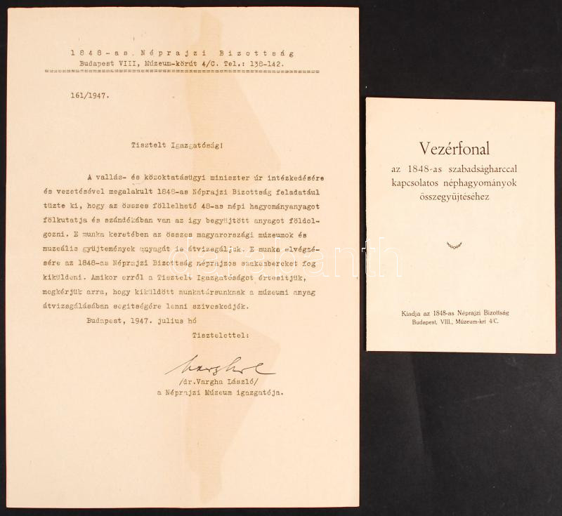 1947 Az 1848-as forradalom centenáriumára készülődő Néprajzi múzeum kö... https://www.darabanth.com/de/208-Fernauktion/208.0/Andere-Sammelgebiete/Historische-Dokumenten-Handschriften~30028/1947-Az-1848-as-forradalom-centenariumara-keszulodo-Neprajzi-muzeum-korlevele-es-kiadott-v~II847533