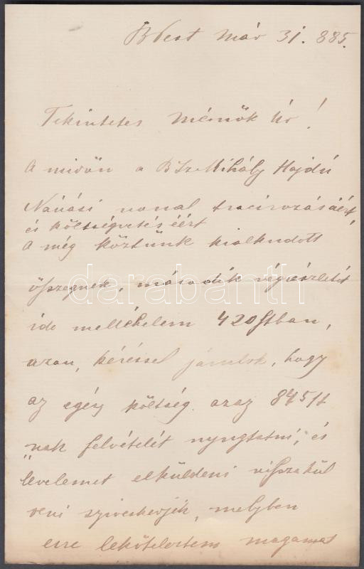 Beschreibung: Dessewffy Aurél (1846-1928) az utolsó országbíró, az MTA tagja saját kézzel írt levele vasúti ügyben