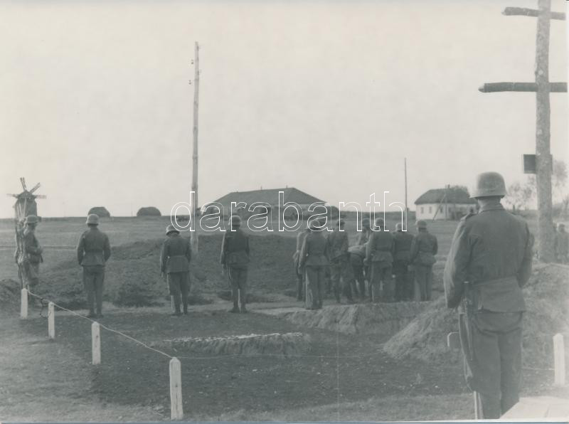 1942 Thöresz Dezső (1902-1963): Az első veszteség. A 2. magyar hadsereg kivonulása a Don-kanyarhoz. A szerző az oda utat fényképezte, kb. 130-150 eredeti negatív őrzi a katonák harctérre vonulását, ez a kép mai másolat a gyűjteményben található eredeti negatívról, 12x17 cm / military photo, funeral