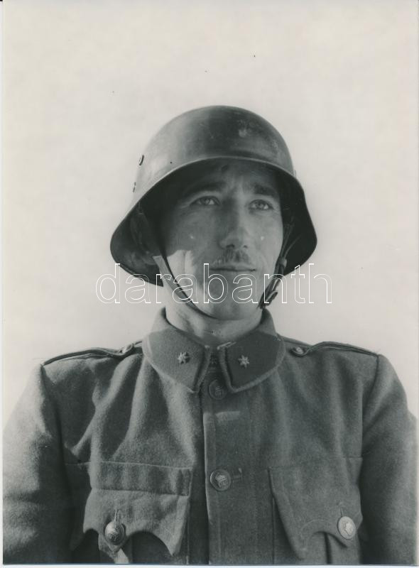 1942 Thöresz Dezső (1902-1963): Katona portré. A 2. magyar hadsereg kivonulása a Don-kanyarhoz. A szerző az oda utat fényképezte, kb. 130-150 eredeti negatív őrzi a katonák harctérre vonulását, ez a kép mai másolat a gyűjteményben található eredeti negatívról, 12x17 cm / military photo