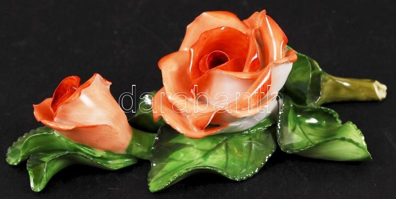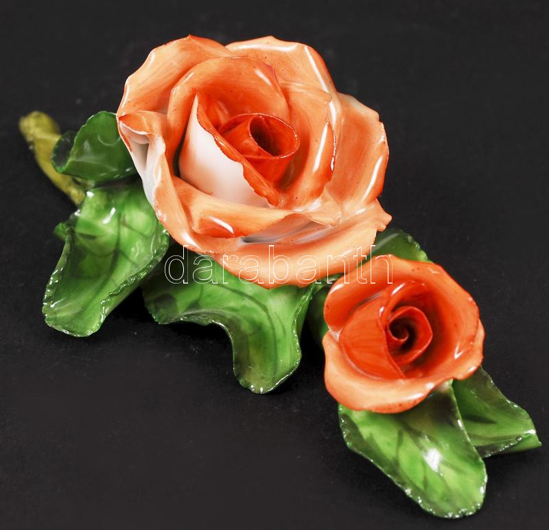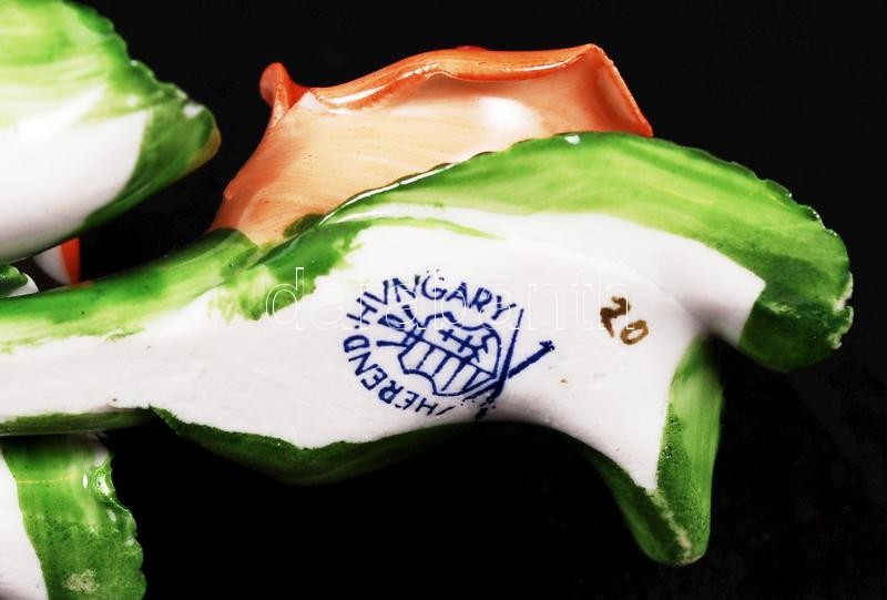 Beschreibung: Herendi porcelán leveles rózsa, kézzel festett, mini lepattanássokkal, jelzett, h: 14 cm