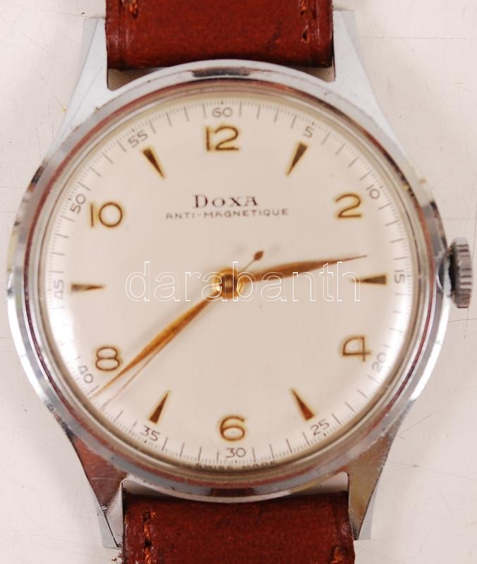 cca 1950 Mechanikus Doxa Anto-magnetique karóra, hibátlan számlappal, ... https://www.darabanth.com/de/208-Fernauktion/208.0/Andere-Sammelgebiete/Uhren~30015/cca-1950-Mechanikus-Doxa-Anto-magnetique-karora-hibatlan-szamlappal-uj-szijjal-jol-jar-D~II852497