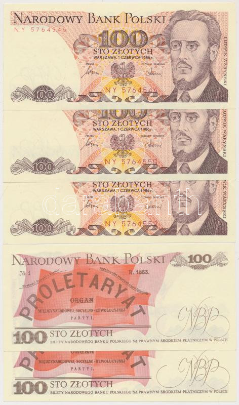 Lengyelország 1986. 100Zl (5x), közte sorszámkövető (3x) és közeli sorszámú (2x) T:I