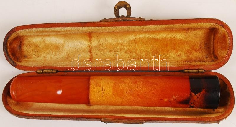 Borostyán végű tajték szipka, jó állapotban, eredeti bőr tokjában, h: ... https://www.darabanth.com/de/209-Fernauktion/209.0/Andere-Sammelgebiete/Antik~200343/Borostyan-vegu-tajtek-szipka-jo-allapotban-eredeti-bor-tokjaban-h-11-cm-3Cbr3E~II856150