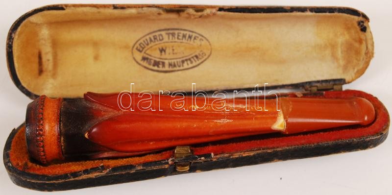 Eduard Trennes Wien borostyán végű tajték szipka eredeti bőr tokban, r... https://www.darabanth.com/de/209-Fernauktion/209.0/Andere-Sammelgebiete/Antik~200343/Eduard-Trennes-Wien-borostyan-vegu-tajtek-szipka-eredeti-bor-tokban-ragasztott-h-10-cm-3Cbr3E~II856099